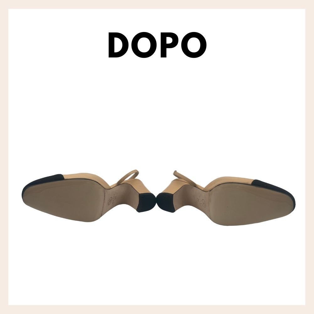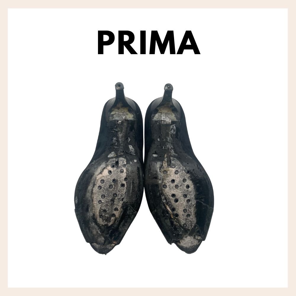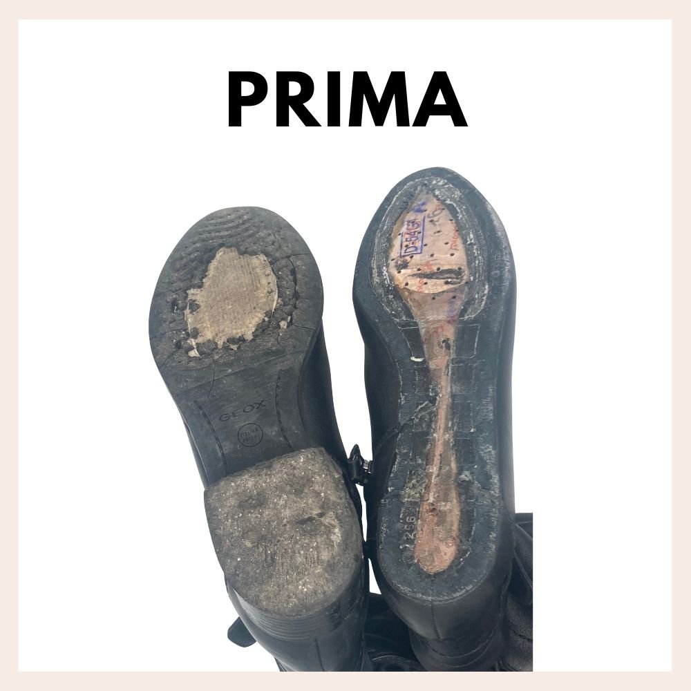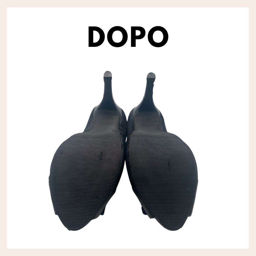 Applicazione mezza soletta e soprattacco in gomma antiscivolo su scarpe da donna