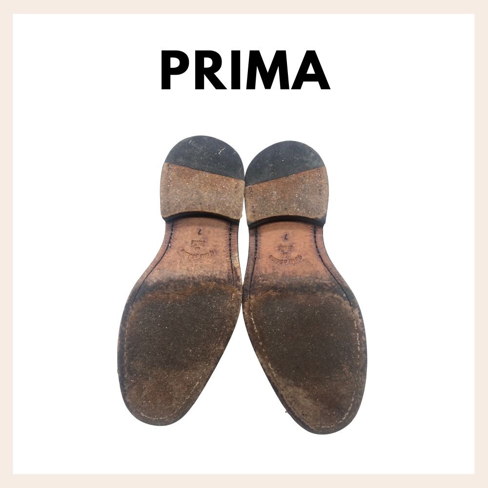 Risuolatura su scarpa classica stile inglese con gomma VIbram modello Eaton. Estratta la vecchia suola in cuoio e sostituita con una nuova in gomma