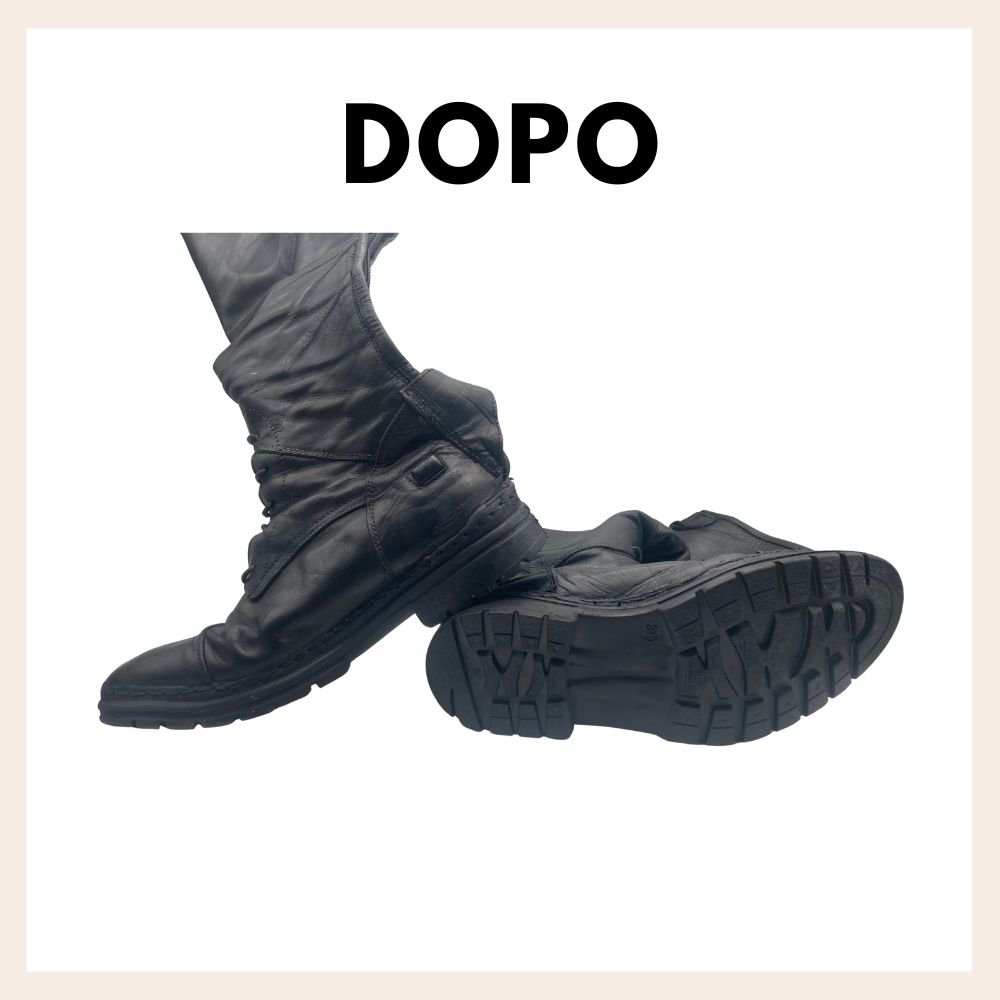 Tintura su stivale scamosciato con tinture apposite per pellami in camoscio