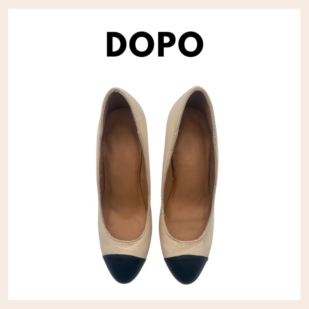 Ricostruzione della parte interna del décolleté con pelle specifica per fodere interno calzature