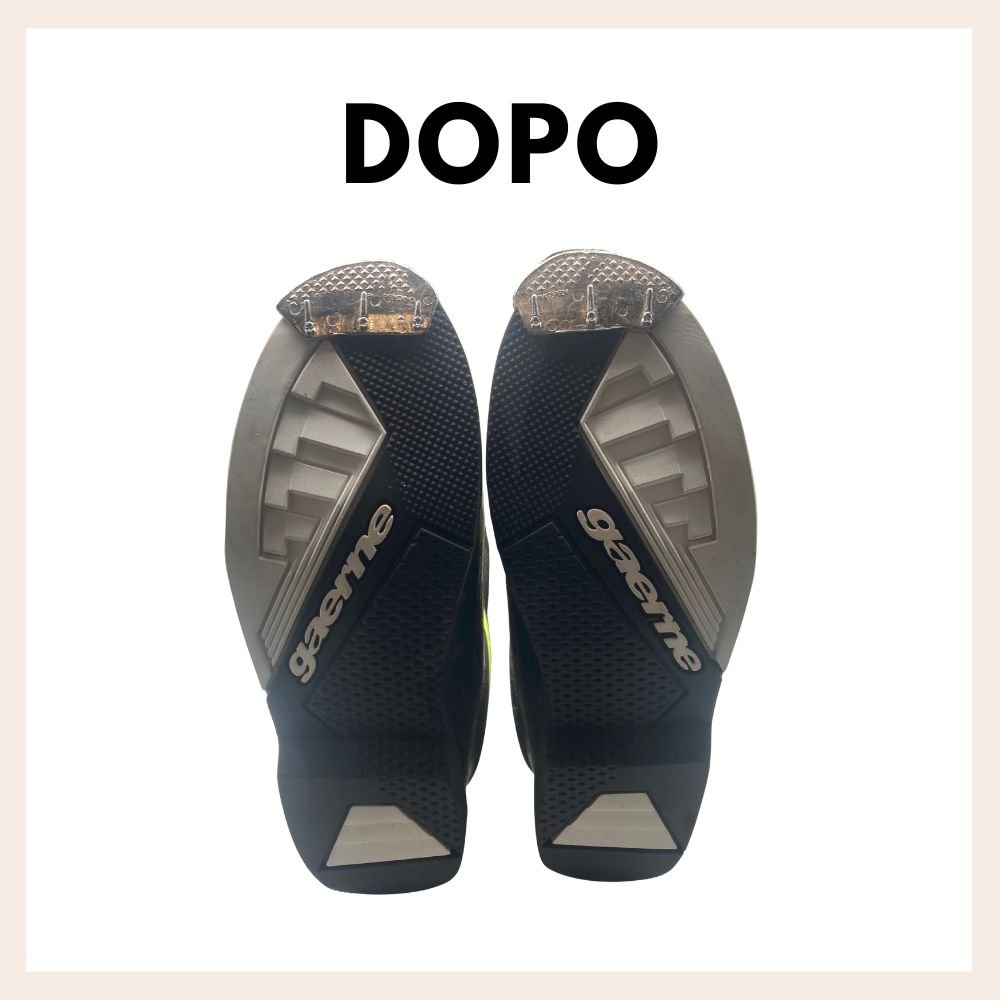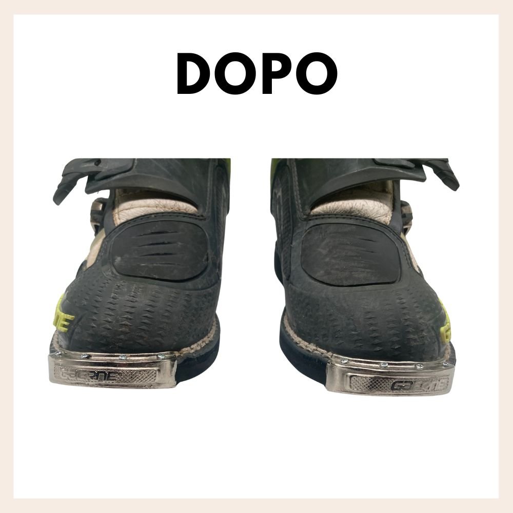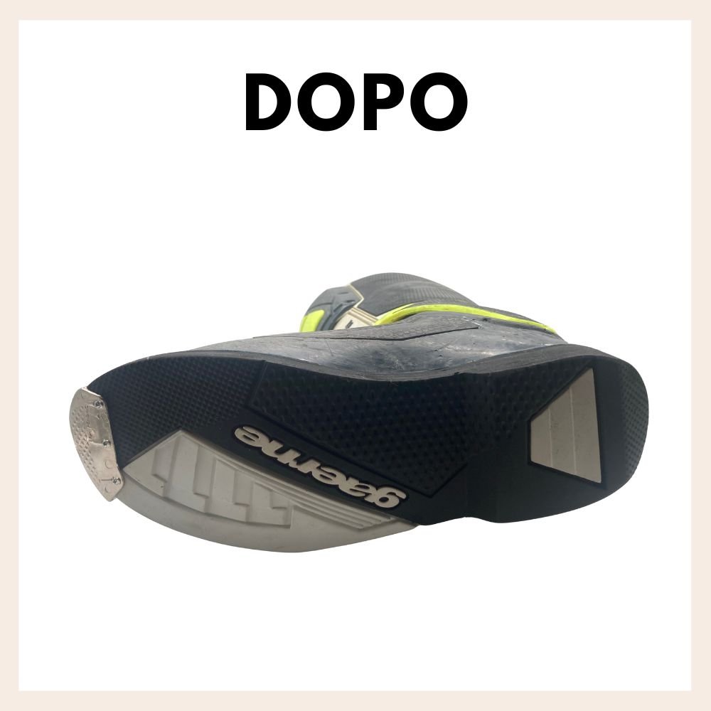 In questa lavorazione viene sostituiuita la vecchia suola da scarpone da moto con una nuova della stessa tipologia